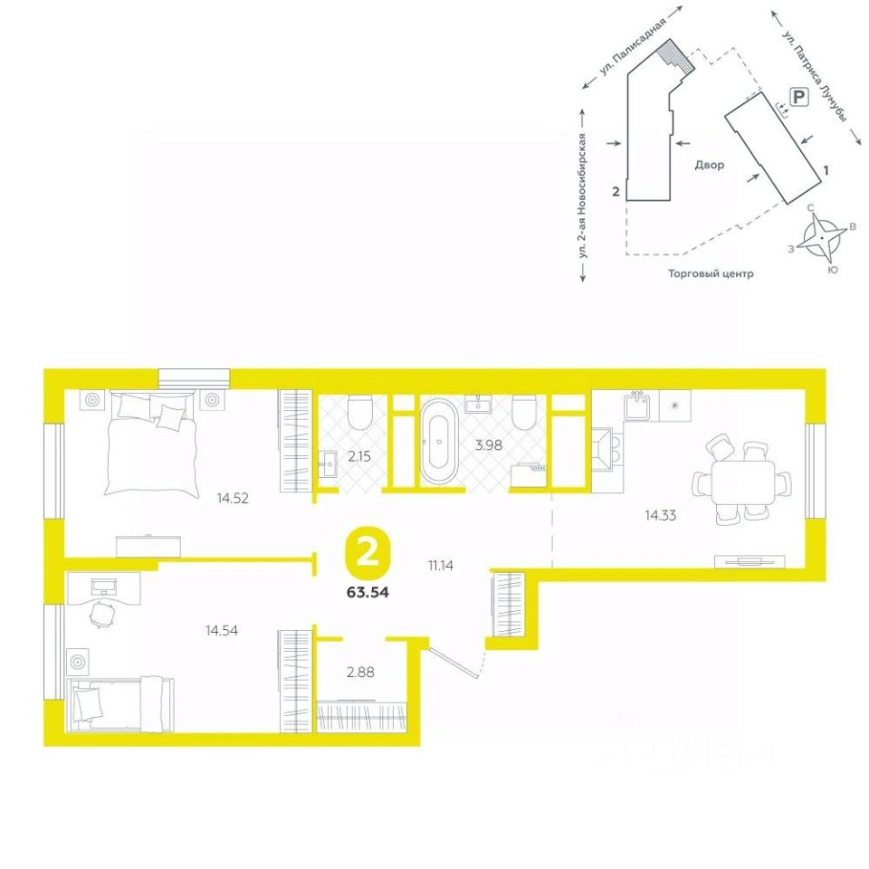Квартира находится в ЖК "Бодровский" от федерального застройщика "Паритет Девелопмент". Это жилой комплекс комфорт-класса с современной архитектурой, расположенный в Екатеринбурге в районе улиц Патриса Лумумбы и 2-й Новосибирской.