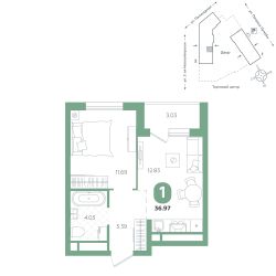 площадь квартиры - 36,97 кв.м