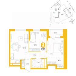 площадь квартиры - 61,38 кв.м