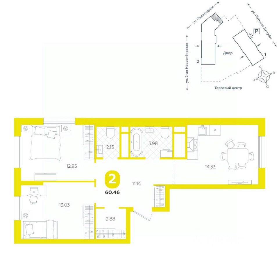 Квартира находится в ЖК "Бодровский" от федерального застройщика "Паритет Девелопмент". Это жилой комплекс комфорт-класса с современной архитектурой, расположенный в Екатеринбурге в районе улиц Патриса Лумумбы и 2-й Новосибирской.