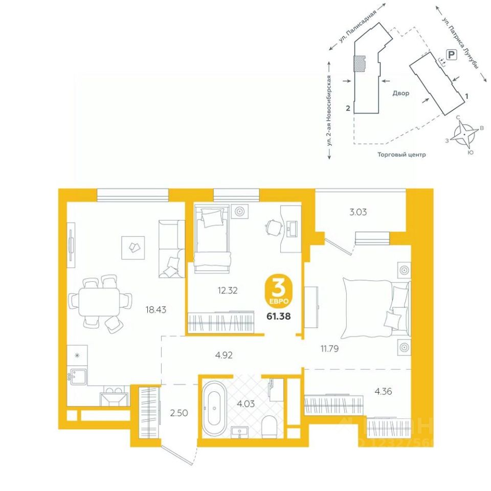 Квартира находится в ЖК "Бодровский" от федерального застройщика "Паритет Девелопмент". Это жилой комплекс комфорт-класса с современной архитектурой, расположенный в Екатеринбурге в районе улиц Патриса Лумумбы и 2-й Новосибирской.