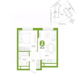 площадь квартиры - 35,52 кв.м
