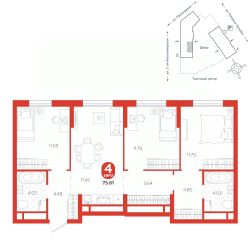 В проекте представлены студии, классические одно- и двухкомнатные варианты, а также двух-, трех- и четырехкомнатные квартиры в евроформате площадью от 25,32 до 76,65.