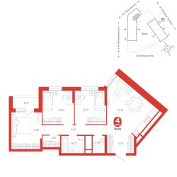 В проекте представлены студии, классические одно- и двухкомнатные варианты, а также двух-, трех- и четырехкомнатные квартиры в евроформате площадью от 25,32 до 76,65.