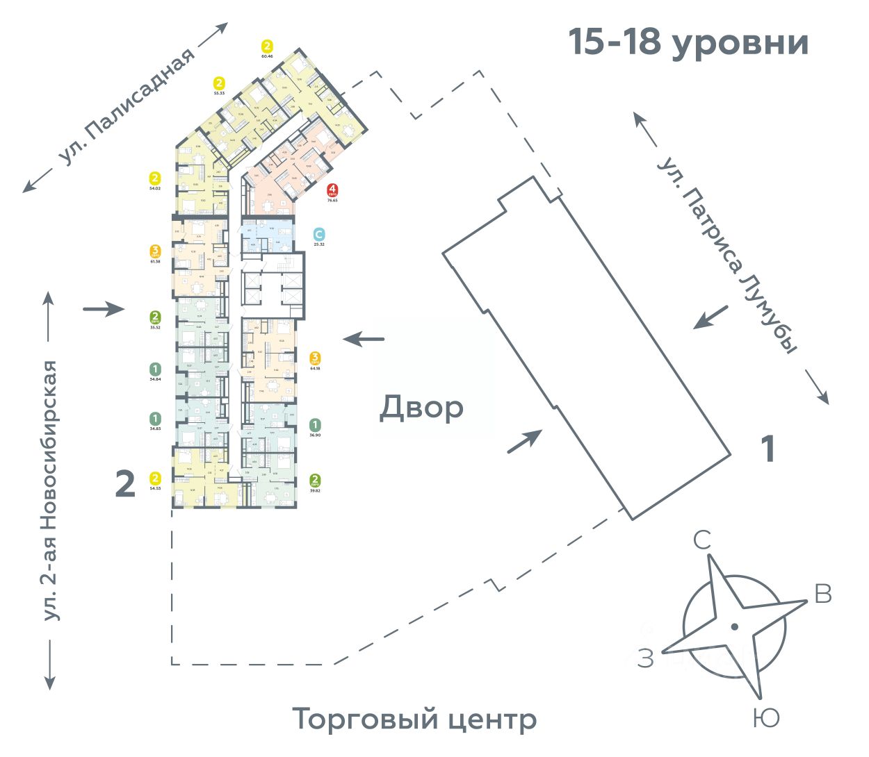 Квартал состоит из двух секций переменной этажности (от 14 до 24 этажей) и подземного паркинга с кладовыми, к которым можно будет спуститься на лифте. На первых этажах предусмотрены коммерческие помещения: жители смогут сделать маникюр, воспользоваться услугами ателье, выпить кофе с круассаном, не покидая своего района. Ввод в эксплуатацию в III кв. 2027 года.