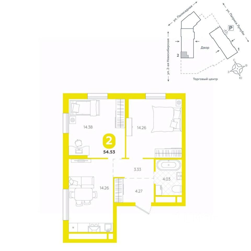 Квартира находится в ЖК "Бодровский" от федерального застройщика "Паритет Девелопмент". Это жилой комплекс комфорт-класса с современной архитектурой, расположенный в Екатеринбурге в районе улиц Патриса Лумумбы и 2-й Новосибирской.