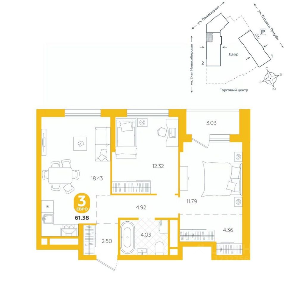Квартира находится в ЖК "Бодровский" от федерального застройщика "Паритет Девелопмент". Это жилой комплекс комфорт-класса с современной архитектурой, расположенный в Екатеринбурге в районе улиц Патриса Лумумбы и 2-й Новосибирской.