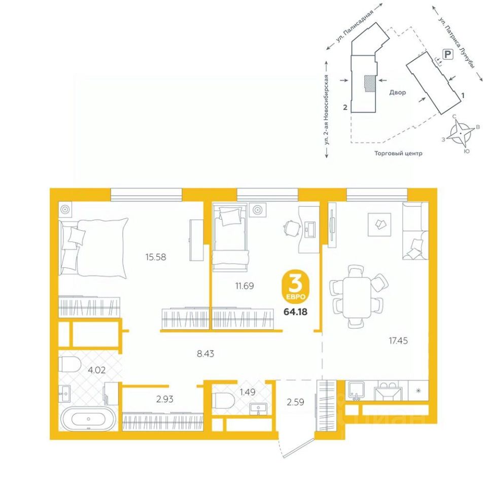 Квартира находится в ЖК "Бодровский" от федерального застройщика "Паритет Девелопмент". Это жилой комплекс комфорт-класса с современной архитектурой, расположенный в Екатеринбурге в районе улиц Патриса Лумумбы и 2-й Новосибирской.