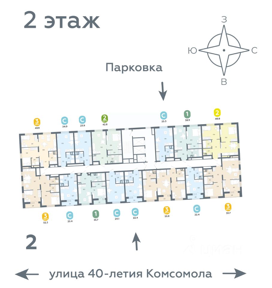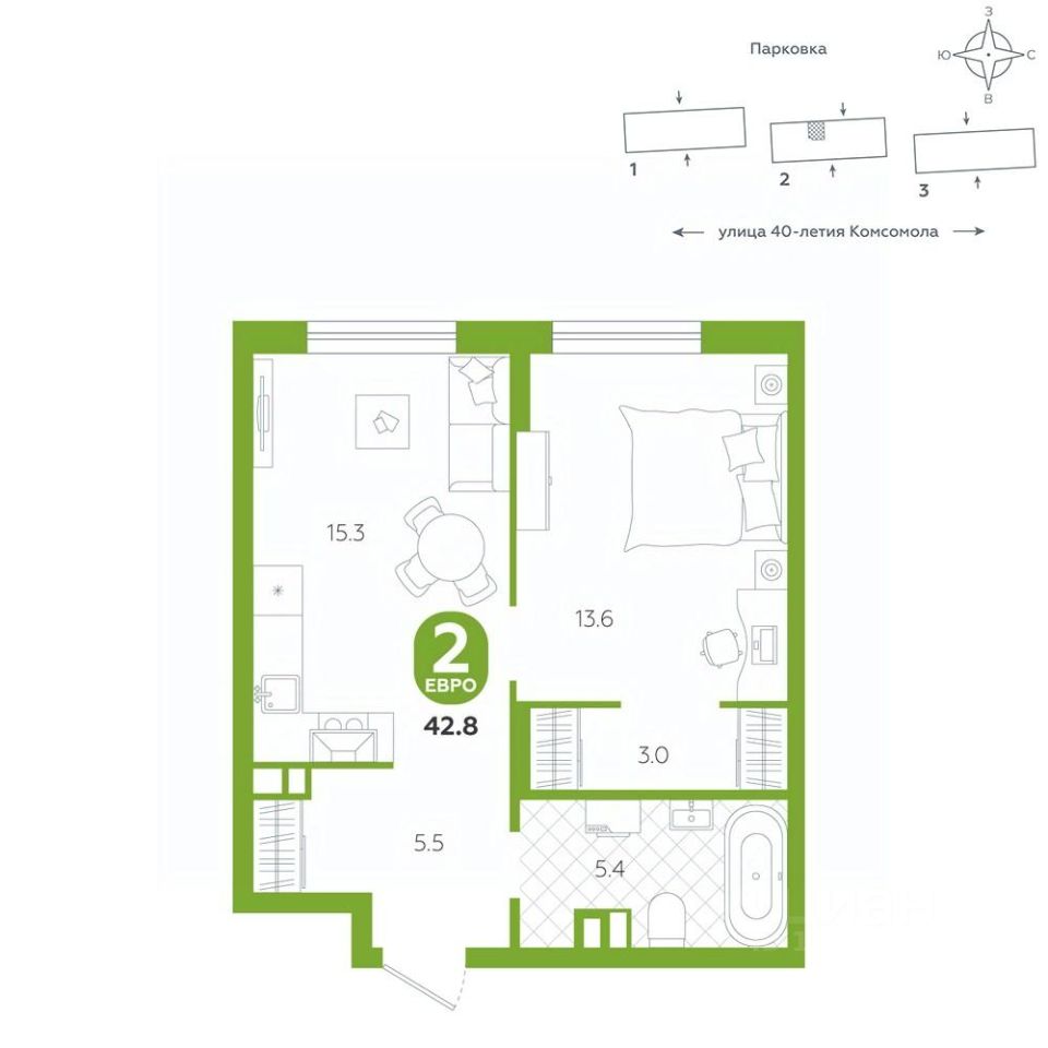 Квартира располагается в ЖК "Комсомольский" — жилом комплексе комфорт-класса. Здесь вы будете наслаждаться беззаботной жизнью, ведь ваш дом — воплощение практичности, безопасности и надежности. Для удобства предусмотрены колясочные на первых этажах домов, где можно оставить велосипеды и коляски в тепле. За безопасность отвечают система электронных ключей и видеонаблюдение. Еще здесь собственная котельная, поэтому в доме всегда будут горячая вода и оплата счетов только за фактически потребленное тепло.
