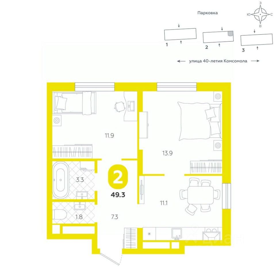 Квартира располагается в ЖК "Комсомольский" — жилом комплексе комфорт-класса. Здесь вы будете наслаждаться беззаботной жизнью, ведь ваш дом — воплощение практичности, безопасности и надежности. Для удобства предусмотрены колясочные на первых этажах домов, где можно оставить велосипеды и коляски в тепле. За безопасность отвечают система электронных ключей и видеонаблюдение. Еще здесь собственная котельная, поэтому в доме всегда будут горячая вода и оплата счетов только за фактически потребленное тепло.