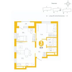 Общая площадь52,9 м²