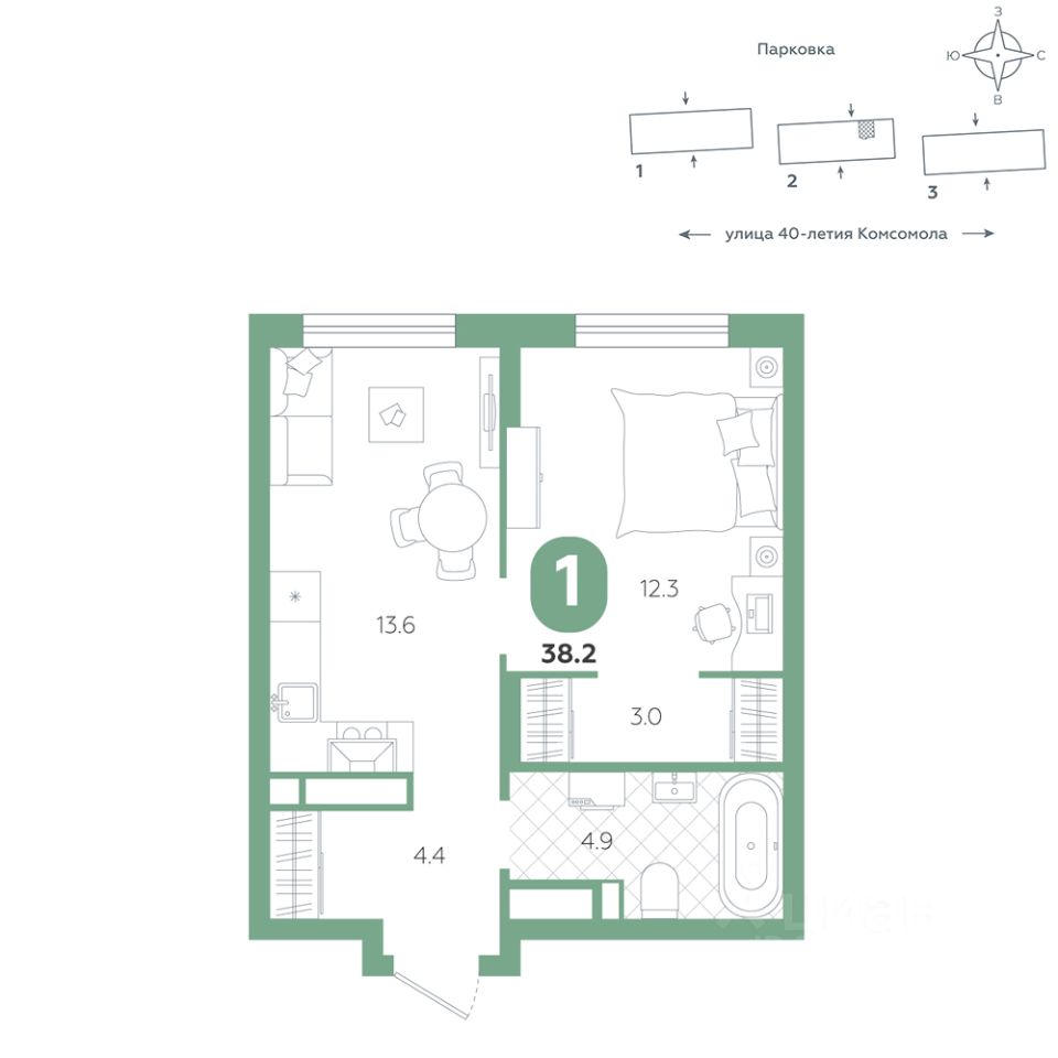 Квартира располагается в ЖК "Комсомольский" — жилом комплексе комфорт-класса. Здесь вы будете наслаждаться беззаботной жизнью, ведь ваш дом — воплощение практичности, безопасности и надежности. Для удобства предусмотрены колясочные на первых этажах домов, где можно оставить велосипеды и коляски в тепле. За безопасность отвечают система электронных ключей и видеонаблюдение. Еще здесь собственная котельная, поэтому в доме всегда будут горячая вода и оплата счетов только за фактически потребленное тепло.