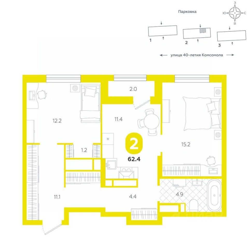 Квартира располагается в ЖК "Комсомольский" — жилом комплексе комфорт-класса. Здесь вы будете наслаждаться беззаботной жизнью, ведь ваш дом — воплощение практичности, безопасности и надежности. Для удобства предусмотрены колясочные на первых этажах домов, где можно оставить велосипеды и коляски в тепле. За безопасность отвечают система электронных ключей и видеонаблюдение. Еще здесь собственная котельная, поэтому в доме всегда будут горячая вода и оплата счетов только за фактически потребленное тепло.