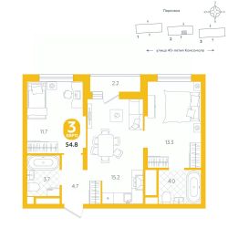 Общая площадь54,8 м²
