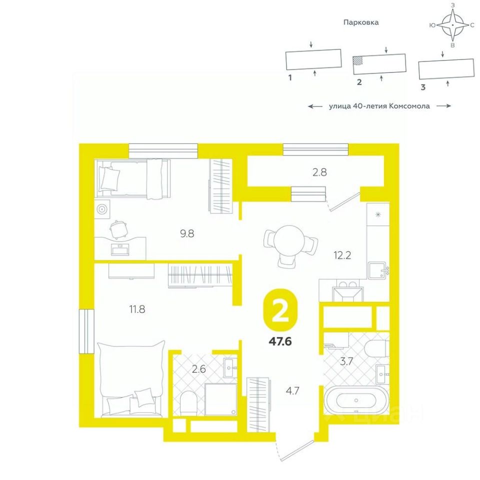 Квартира располагается в ЖК "Комсомольский" — жилом комплексе комфорт-класса. Здесь вы будете наслаждаться беззаботной жизнью, ведь ваш дом — воплощение практичности, безопасности и надежности. Для удобства предусмотрены колясочные на первых этажах домов, где можно оставить велосипеды и коляски в тепле. За безопасность отвечают система электронных ключей и видеонаблюдение. Еще здесь собственная котельная, поэтому в доме всегда будут горячая вода и оплата счетов только за фактически потребленное тепло.