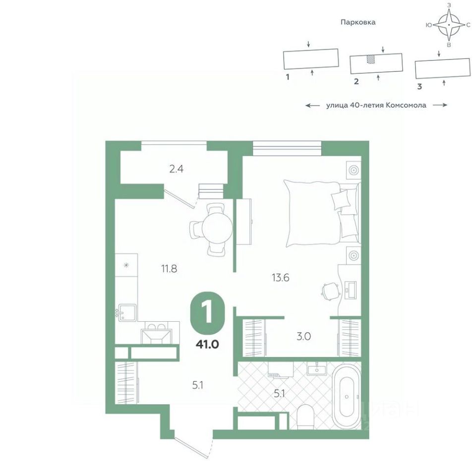 Квартира располагается в ЖК "Комсомольский" — жилом комплексе комфорт-класса. Здесь вы будете наслаждаться беззаботной жизнью, ведь ваш дом — воплощение практичности, безопасности и надежности. Для удобства предусмотрены колясочные на первых этажах домов, где можно оставить велосипеды и коляски в тепле. За безопасность отвечают система электронных ключей и видеонаблюдение. Еще здесь собственная котельная, поэтому в доме всегда будут горячая вода и оплата счетов только за фактически потребленное тепло.