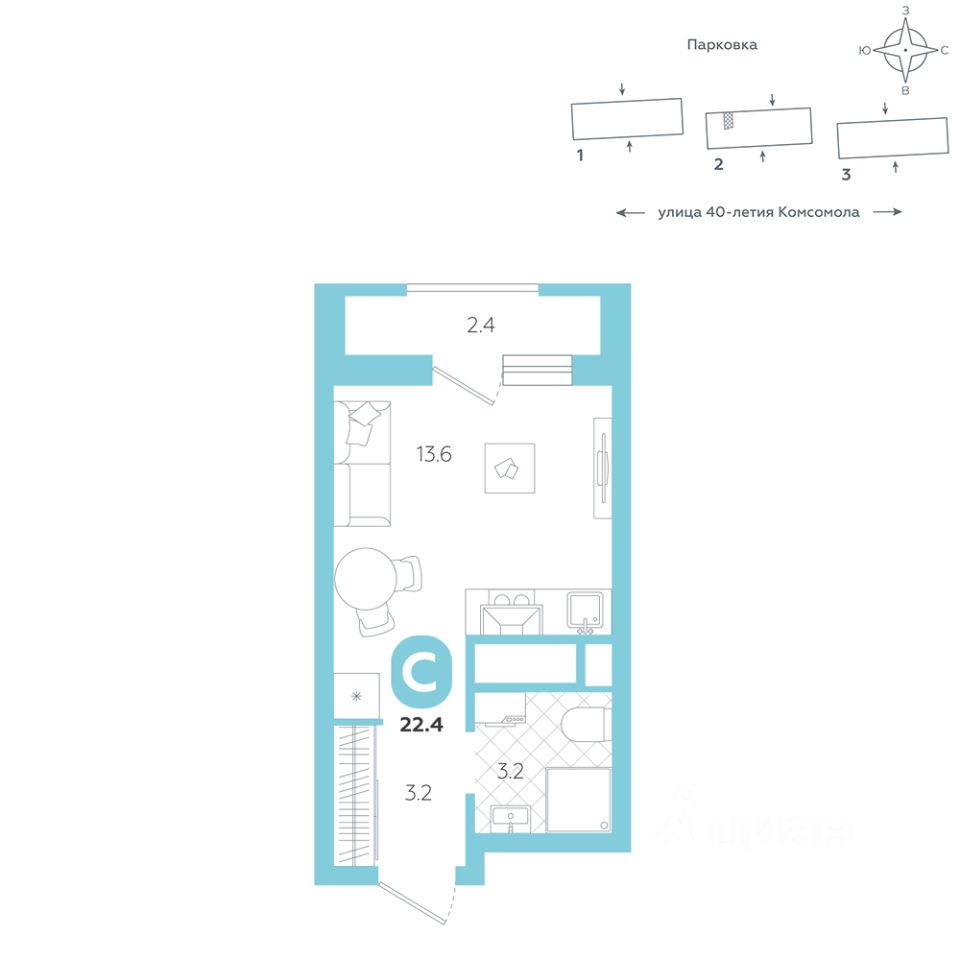 Эргономичная квартира-студия с лоджией и перспективой роста в цене — отличный выбор для тех, кто делает первые шаги к самостоятельной жизни. Общая площадь квартиры 22,4 кв.м., и ее умная планировка позволяет создать атмосферу, полностью отражающую ваши стиль и предпочтения. Квартира располагается в ЖК "Комсомольский" — жилом комплексе комфорт-класса. Здесь вы будете наслаждаться беззаботной жизнью, ведь ваш дом — воплощение практичности, безопасности и надежности. Для удобства предусмотрены колясочные на первых этажах домов, где можно оставить велосипеды и коляски в тепле. За безопасность отвечают система электронных ключей и видеонаблюдение. Еще здесь собственная котельная, поэтому в доме всегда будут горячая вода и оплата счетов только за фактически потребленное тепло. ПРЕИМУЩЕСТВА ЖК На этаже 15 квартир Красивые и функциональные парадные с мягкой и стильной зоной для отдыха, книгообменником, встроенными почтовыми ящиками и нишами для сумок Колясочные с доступом по ключу IP-домофоны Тихие лифты с плавным ходом О ПРОЕКТЕ ЖК "Комсомольский" строится в спокойном Кировском районе Екатеринбурга в границах улиц Сыромолотова — Рассветная — 40-лет Комсомола. Комплекс состоит из трех домов переменной этажности, которые выделяются динамичными линиями, выразительными фасадами и стильными лоджиями. ЛОКАЦИЯ Всё, что необходимо для повседневной жизни, находится недалеко от дома: школы, детские сады, продуктовые магазины, фитнес-клубы. Дорога до центра города на машине займет всего 10 минут — достаточно повернуть с улицы 40-летия Комсомола на улицу Владимира Высоцкого. Рядом с этим перекрестком начинается "Тропа здоровья" — большой терренкур вдоль "Каменных палаток". 10 мин до центра 3-4 минуты до школы No 82, гимназии No 176 4-5 минут до детских садов No 208, No 583, 266 20 мин до Свердловского областного медицинского колледжа и Центральной городской больницы No 7 В рамках стратегического развития района на первых этажах домов появятся коммерческие помещения, в которых откроются магазины и кафе. Следует учесть, что к 2030 году в Кировском районе планируется формирование регионального рекреационно-оздоровительного кластера, строительство ветки метро, расширение и модернизация старых промышленных зон социальной и бизнес-инфраструктуры, что приведет к созданию комфортной среды для жизни. Кроме того, в стратегию входит развитие Шарташского лесного парка как центра регионального и международного туризма. СПОСОБЫ ПОКУПКИ Ипотека: подберем выгодные условия в нескольких банках, чтобы вы могли выбрать лучшее Материнской капитал: можно использовать в качестве первоначального взноса Рассрочка: платите частями без % Сертификаты: позволяют оплатить часть стоимости квартиры О КОМПАНИИ "Паритет Девелопмент" — это современный и ответственный подход к реализации проектов в сфере жилищного строительства. Компания формирует среду, способную создать новое качество жизни для клиентов, поэтому каждый проект имеет свою философию — не просто квадрат