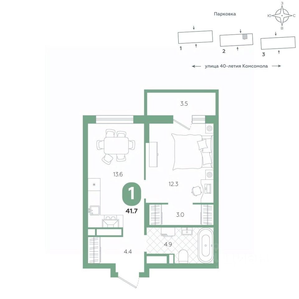 Эта квартира — образец функционала и практичности: встроенные ниши под шкафы эргономично организуют хранение, а высокие потолки подчеркивают ощущение простора. Здесь царит продуманный баланс — рациональная планировка и прозрачная логика пространства готовы служить вашим потребностям и создавать приятную среду для жизни. Квартира располагается в ЖК "Комсомольский" — жилом комплексе комфорт-класса. Здесь вы будете наслаждаться беззаботной жизнью, ведь ваш дом — воплощение практичности, безопасности и надежности. Для удобства предусмотрены колясочные на первых этажах домов, где можно оставить велосипеды и коляски в тепле. За безопасность отвечают система электронных ключей и видеонаблюдение. Еще здесь собственная котельная, поэтому в доме всегда будут горячая вода и оплата счетов только за фактически потребленное тепло. ПРЕИМУЩЕСТВА ЖК На этаже 15 квартир Красивые и функциональные парадные с мягкой и стильной зоной для отдыха, книгообменником, встроенными почтовыми ящиками и нишами для сумок Колясочные с доступом по ключу IP-домофоны Тихие лифты с плавным ходом О ПРОЕКТЕ ЖК "Комсомольский" строится в спокойном Кировском районе Екатеринбурга в границах улиц Сыромолотова — Рассветная — 40-лет Комсомола. Комплекс состоит из трех домов переменной этажности, которые выделяются динамичными линиями, выразительными фасадами и стильными лоджиями. ЛОКАЦИЯ Всё, что необходимо для повседневной жизни, находится недалеко от дома: школы, детские сады, продуктовые магазины, фитнес-клубы. Дорога до центра города на машине займет всего 10 минут — достаточно повернуть с улицы 40-летия Комсомола на улицу Владимира Высоцкого. Рядом с этим перекрестком начинается "Тропа здоровья" — большой терренкур вдоль "Каменных палаток". 10 мин до центра 3-4 минуты до школы No 82, гимназии No 176 4-5 минут до детских садов No 208, No 583, 266 20 мин до Свердловского областного медицинского колледжа и Центральной городской больницы No 7 В рамках стратегического развития района на первых этажах домов появятся коммерческие помещения, в которых откроются магазины и кафе. Следует учесть, что к 2030 году в Кировском районе планируется формирование регионального рекреационно-оздоровительного кластера, строительство ветки метро, расширение и модернизация старых промышленных зон социальной и бизнес-инфраструктуры, что приведет к созданию комфортной среды для жизни. Кроме того, в стратегию входит развитие Шарташского лесного парка как центра регионального и международного туризма. СПОСОБЫ ПОКУПКИ Ипотека: подберем выгодные условия в нескольких банках, чтобы вы могли выбрать лучшее Материнской капитал: можно использовать в качестве первоначального взноса Рассрочка: платите частями без % Сертификаты: позволяют оплатить часть стоимости квартиры О КОМПАНИИ "Паритет Девелопмент" — это современный и ответственный подход к реализации проектов в сфере жилищного строительства. Компания формирует среду, способную создать новое качество жизни для клиентов, поэтому каждый
