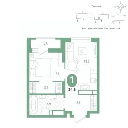 Квартира располагается в ЖК "Комсомольский" — жилом комплексе комфорт-класса. Здесь вы будете наслаждаться беззаботной жизнью, ведь ваш дом — воплощение практичности, безопасности и надежности. Для удобства предусмотрены колясочные на первых этажах домов, где можно оставить велосипеды и коляски в тепле. За безопасность отвечают система электронных ключей и видеонаблюдение. Еще здесь собственная котельная, поэтому в доме всегда будут горячая вода и оплата счетов только за фактически потребленное тепло.