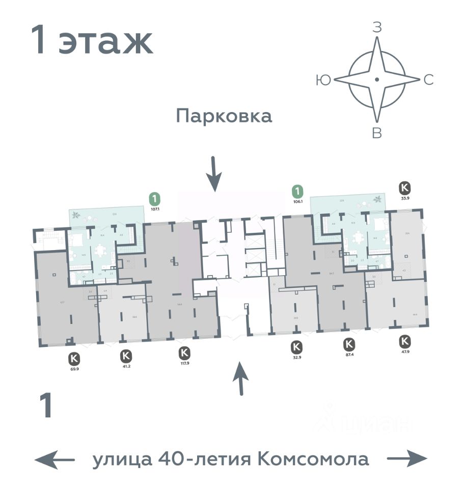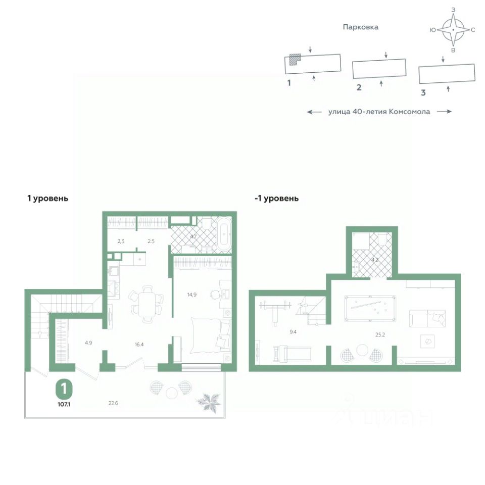 Квартира располагается в ЖК "Комсомольский" — жилом комплексе комфорт-класса. Здесь вы будете наслаждаться беззаботной жизнью, ведь ваш дом — воплощение практичности, безопасности и надежности. Для удобства предусмотрены колясочные на первых этажах домов, где можно оставить велосипеды и коляски в тепле. За безопасность отвечают система электронных ключей и видеонаблюдение. Еще здесь собственная котельная, поэтому в доме всегда будут горячая вода и оплата счетов только за фактически потребленное тепло.