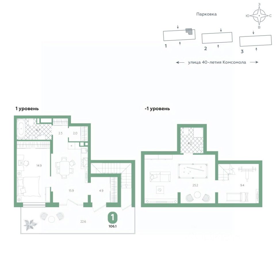 Квартира располагается в ЖК "Комсомольский" — жилом комплексе комфорт-класса. Здесь вы будете наслаждаться беззаботной жизнью, ведь ваш дом — воплощение практичности, безопасности и надежности. Для удобства предусмотрены колясочные на первых этажах домов, где можно оставить велосипеды и коляски в тепле. За безопасность отвечают система электронных ключей и видеонаблюдение. Еще здесь собственная котельная, поэтому в доме всегда будут горячая вода и оплата счетов только за фактически потребленное тепло.