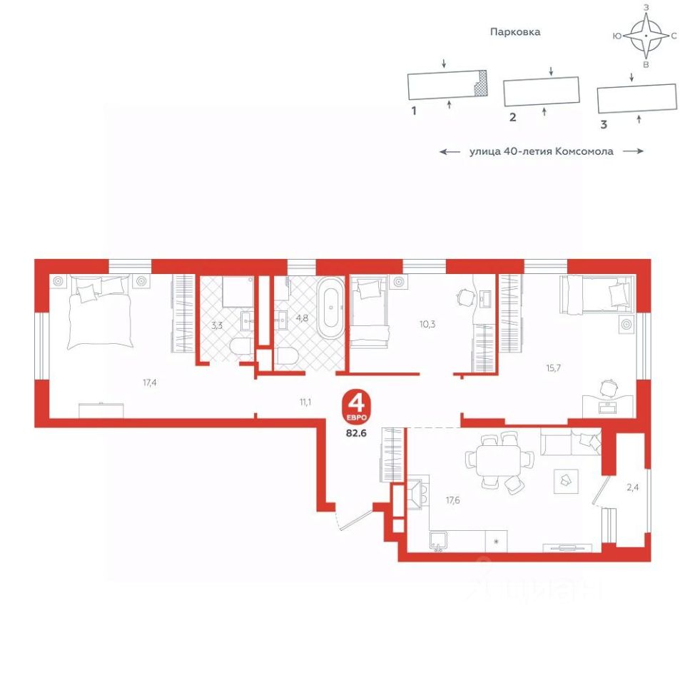 Квартира располагается в ЖК "Комсомольский" — жилом комплексе комфорт-класса. Здесь вы будете наслаждаться беззаботной жизнью, ведь ваш дом — воплощение практичности, безопасности и надежности. Для удобства предусмотрены колясочные на первых этажах домов, где можно оставить велосипеды и коляски в тепле. За безопасность отвечают система электронных ключей и видеонаблюдение. Еще здесь собственная котельная, поэтому в доме всегда будут горячая вода и оплата счетов только за фактически потребленное тепло.