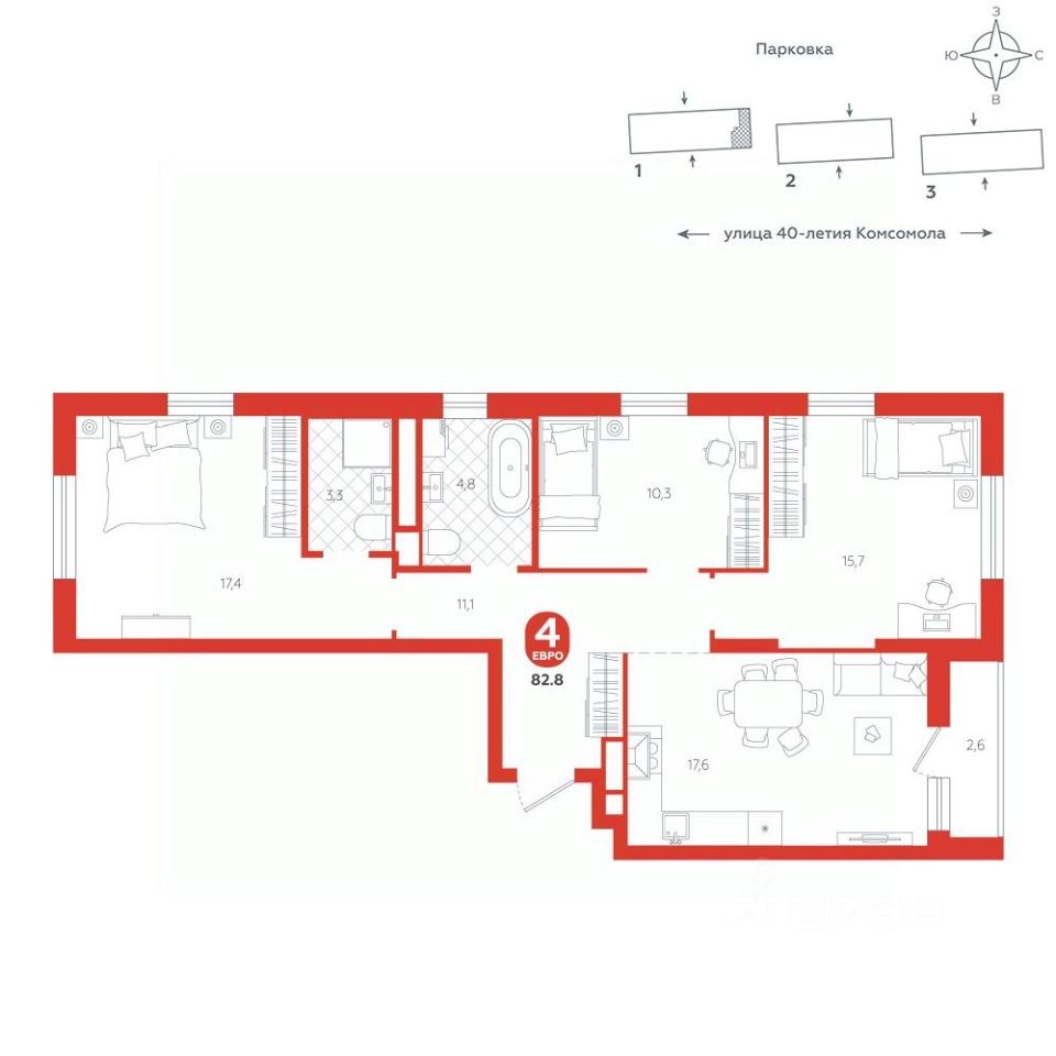 Квартира располагается в ЖК "Комсомольский" — жилом комплексе комфорт-класса. Здесь вы будете наслаждаться беззаботной жизнью, ведь ваш дом — воплощение практичности, безопасности и надежности. Для удобства предусмотрены колясочные на первых этажах домов, где можно оставить велосипеды и коляски в тепле. За безопасность отвечают система электронных ключей и видеонаблюдение. Еще здесь собственная котельная, поэтому в доме всегда будут горячая вода и оплата счетов только за фактически потребленное тепло.