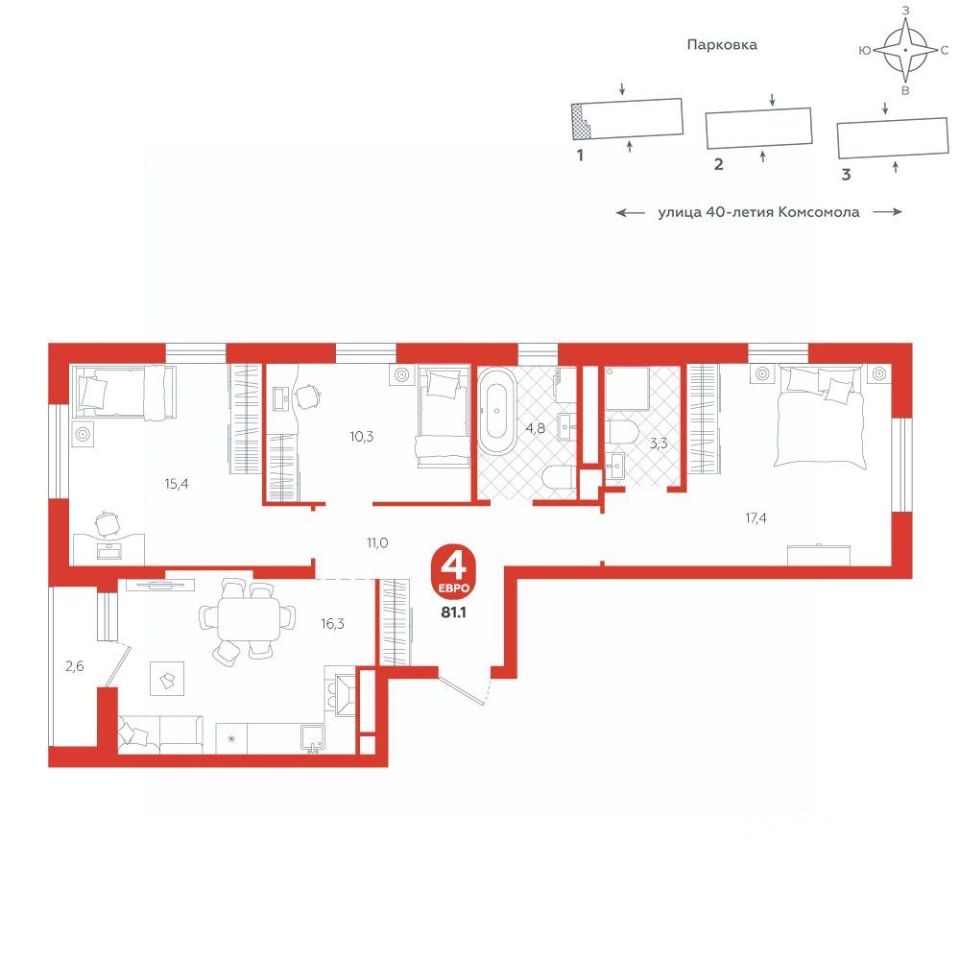 Квартира располагается в ЖК "Комсомольский" — жилом комплексе комфорт-класса. Здесь вы будете наслаждаться беззаботной жизнью, ведь ваш дом — воплощение практичности, безопасности и надежности. Для удобства предусмотрены колясочные на первых этажах домов, где можно оставить велосипеды и коляски в тепле. За безопасность отвечают система электронных ключей и видеонаблюдение. Еще здесь собственная котельная, поэтому в доме всегда будут горячая вода и оплата счетов только за фактически потребленное тепло.