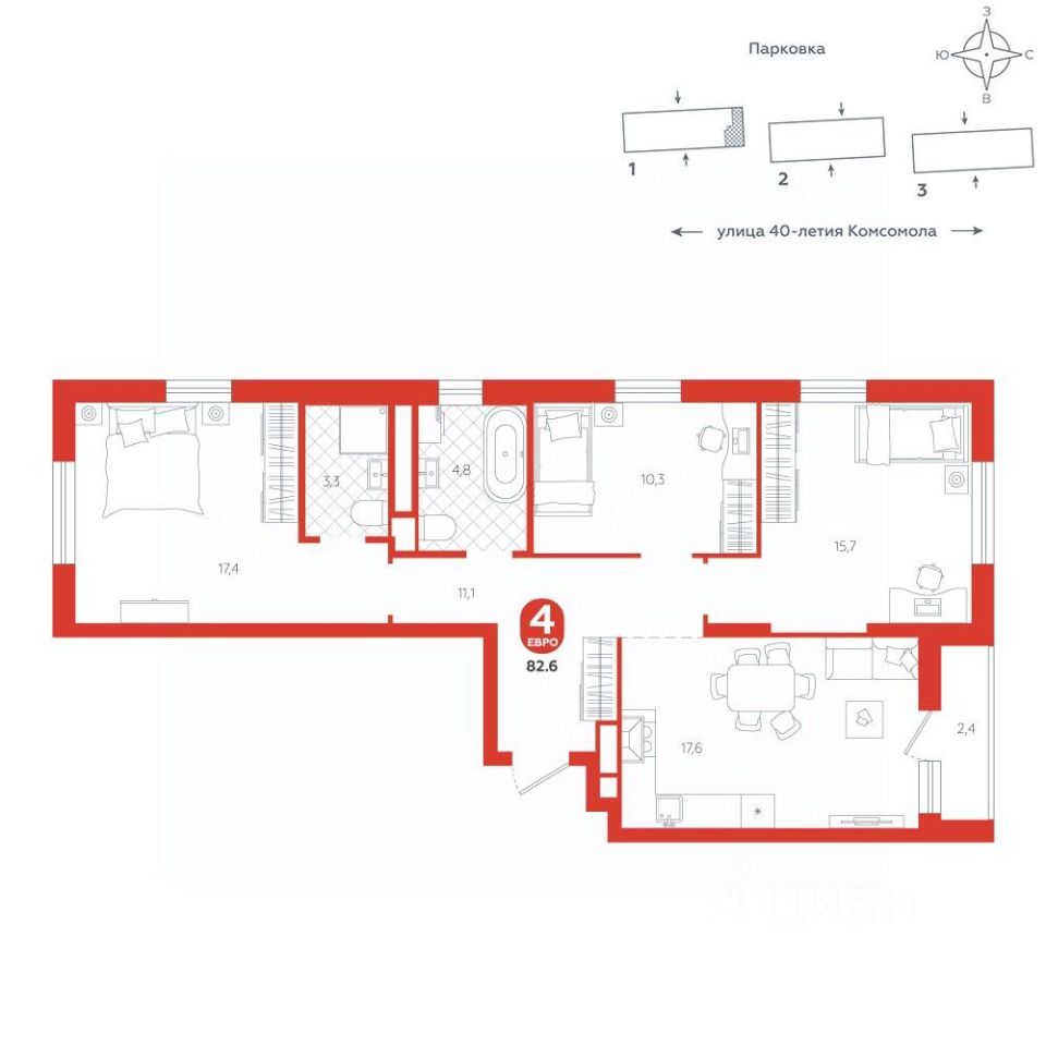 Квартира располагается в ЖК "Комсомольский" — жилом комплексе комфорт-класса. Здесь вы будете наслаждаться беззаботной жизнью, ведь ваш дом — воплощение практичности, безопасности и надежности. Для удобства предусмотрены колясочные на первых этажах домов, где можно оставить велосипеды и коляски в тепле. За безопасность отвечают система электронных ключей и видеонаблюдение. Еще здесь собственная котельная, поэтому в доме всегда будут горячая вода и оплата счетов только за фактически потребленное тепло.