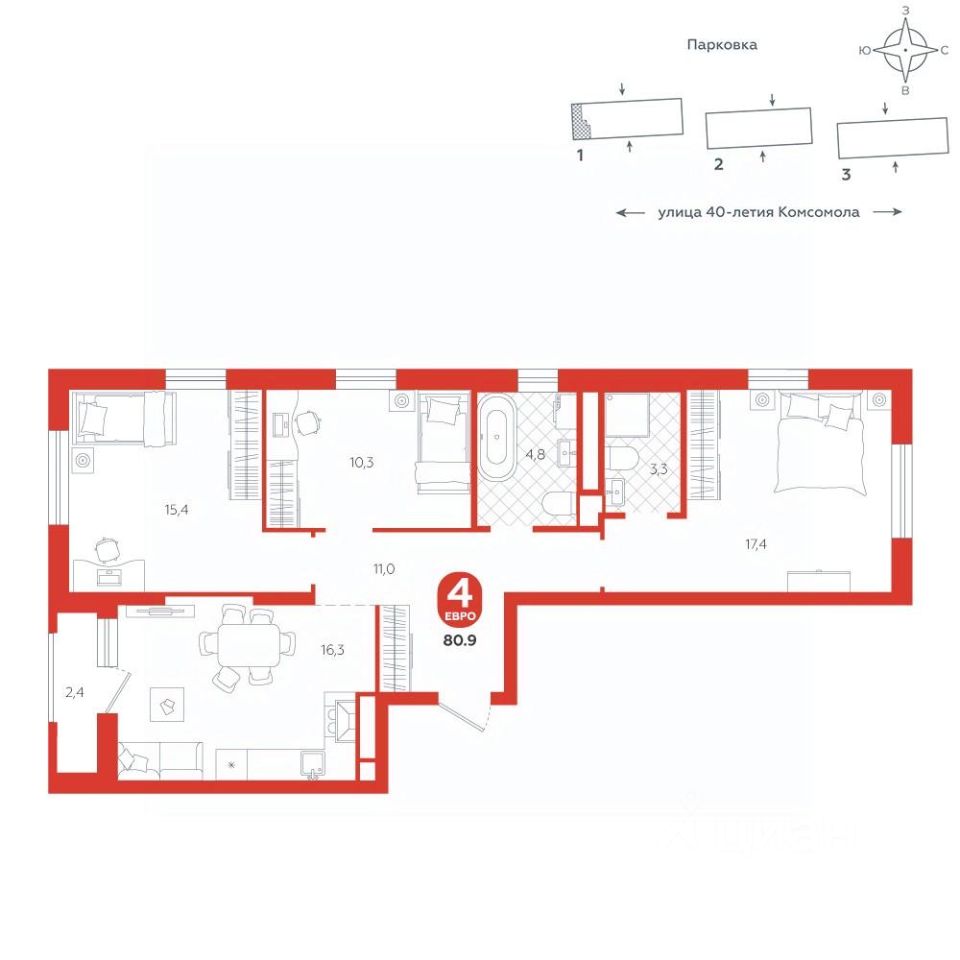 Квартира располагается в ЖК "Комсомольский" — жилом комплексе комфорт-класса. Здесь вы будете наслаждаться беззаботной жизнью, ведь ваш дом — воплощение практичности, безопасности и надежности. Для удобства предусмотрены колясочные на первых этажах домов, где можно оставить велосипеды и коляски в тепле. За безопасность отвечают система электронных ключей и видеонаблюдение. Еще здесь собственная котельная, поэтому в доме всегда будут горячая вода и оплата счетов только за фактически потребленное тепло.
