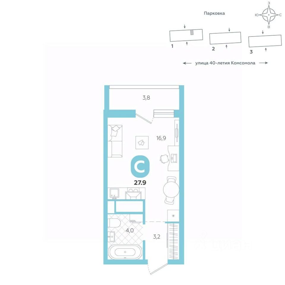 Эргономичная квартира-студия с лоджией и перспективой роста в цене — отличный выбор для тех, кто делает первые шаги к самостоятельной жизни. Общая площадь квартиры 27,9 кв.м., и ее умная планировка позволяет создать атмосферу, полностью отражающую ваши стиль и предпочтения.