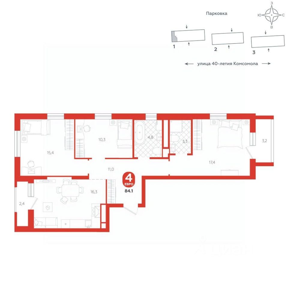 Квартира располагается в ЖК "Комсомольский" — жилом комплексе комфорт-класса. Здесь вы будете наслаждаться беззаботной жизнью, ведь ваш дом — воплощение практичности, безопасности и надежности. Для удобства предусмотрены колясочные на первых этажах домов, где можно оставить велосипеды и коляски в тепле. За безопасность отвечают система электронных ключей и видеонаблюдение. Еще здесь собственная котельная, поэтому в доме всегда будут горячая вода и оплата счетов только за фактически потребленное тепло.