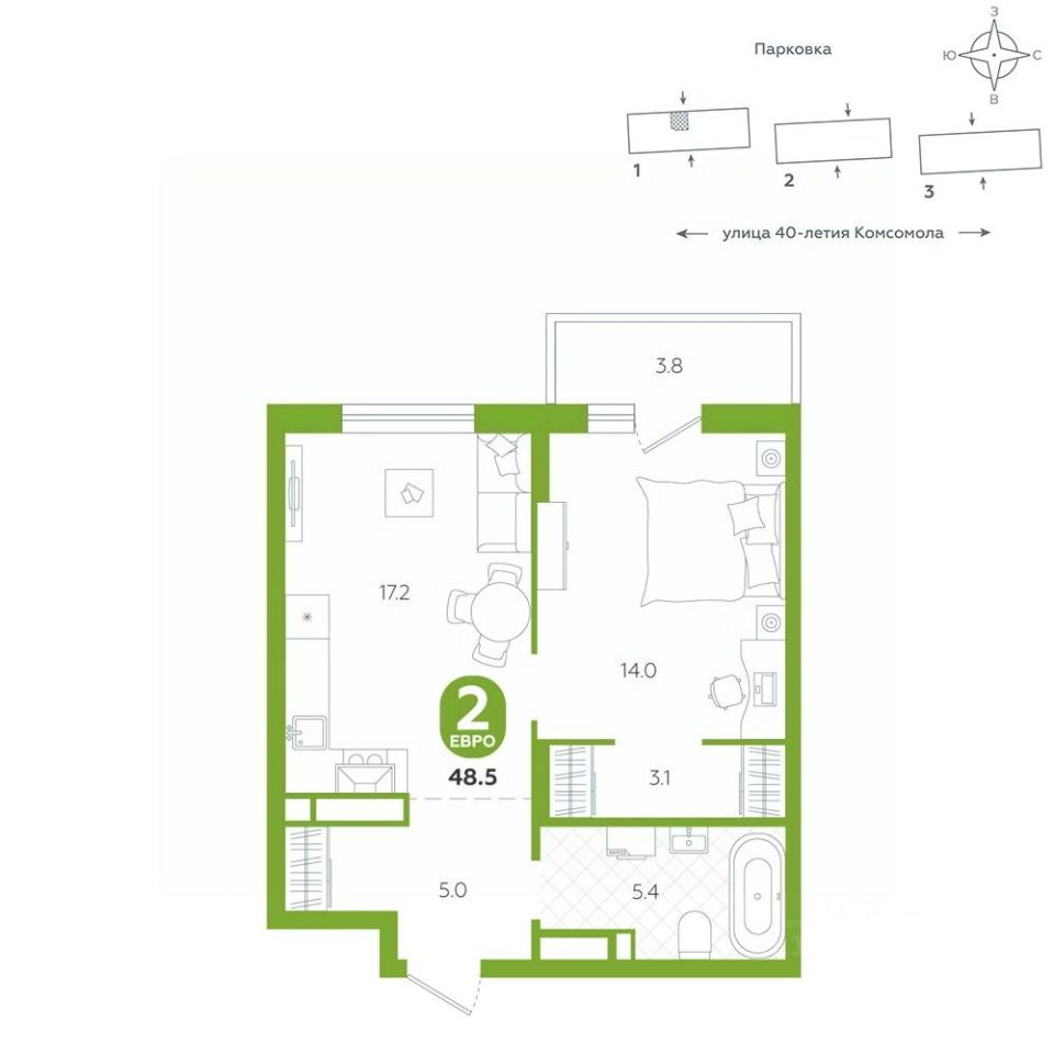 Квартира располагается в ЖК "Комсомольский" — жилом комплексе комфорт-класса. Здесь вы будете наслаждаться беззаботной жизнью, ведь ваш дом — воплощение практичности, безопасности и надежности. Для удобства предусмотрены колясочные на первых этажах домов, где можно оставить велосипеды и коляски в тепле. За безопасность отвечают система электронных ключей и видеонаблюдение. Еще здесь собственная котельная, поэтому в доме всегда будут горячая вода и оплата счетов только за фактически потребленное тепло.