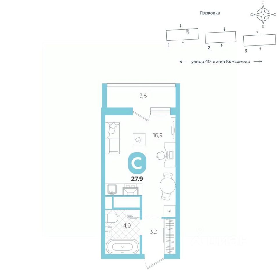 Эргономичная квартира-студия с лоджией и перспективой роста в цене — отличный выбор для тех, кто делает первые шаги к самостоятельной жизни. Общая площадь квартиры 27,9 кв.м., и ее умная планировка позволяет создать атмосферу, полностью отражающую ваши стиль и предпочтения.