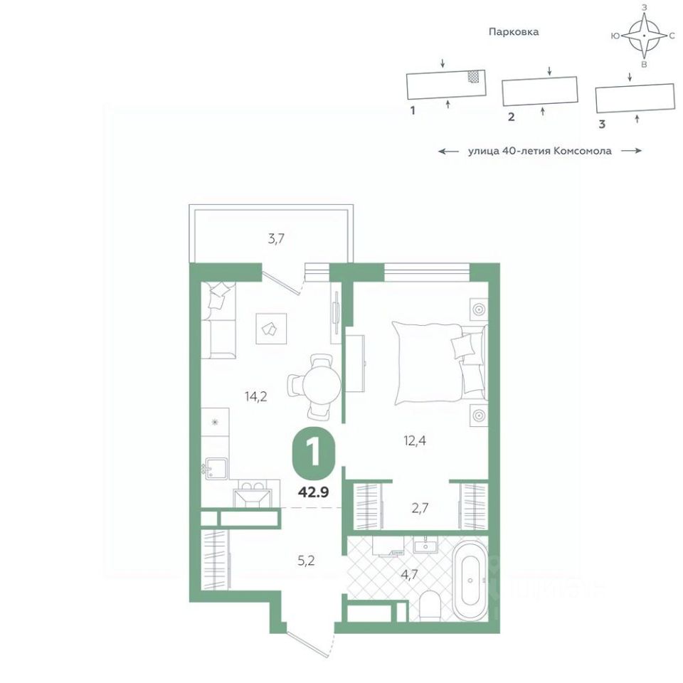 Квартира располагается в ЖК "Комсомольский" — жилом комплексе комфорт-класса. Здесь вы будете наслаждаться беззаботной жизнью, ведь ваш дом — воплощение практичности, безопасности и надежности. Для удобства предусмотрены колясочные на первых этажах домов, где можно оставить велосипеды и коляски в тепле. За безопасность отвечают система электронных ключей и видеонаблюдение. Еще здесь собственная котельная, поэтому в доме всегда будут горячая вода и оплата счетов только за фактически потребленное тепло.