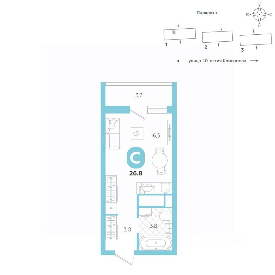 Эргономичная квартира-студия с лоджией и перспективой роста в цене — отличный выбор для тех, кто делает первые шаги к самостоятельной жизни. Общая площадь квартиры 26,8 кв.м., и ее умная планировка позволяет создать атмосферу, полностью отражающую ваши стиль и предпочтения.