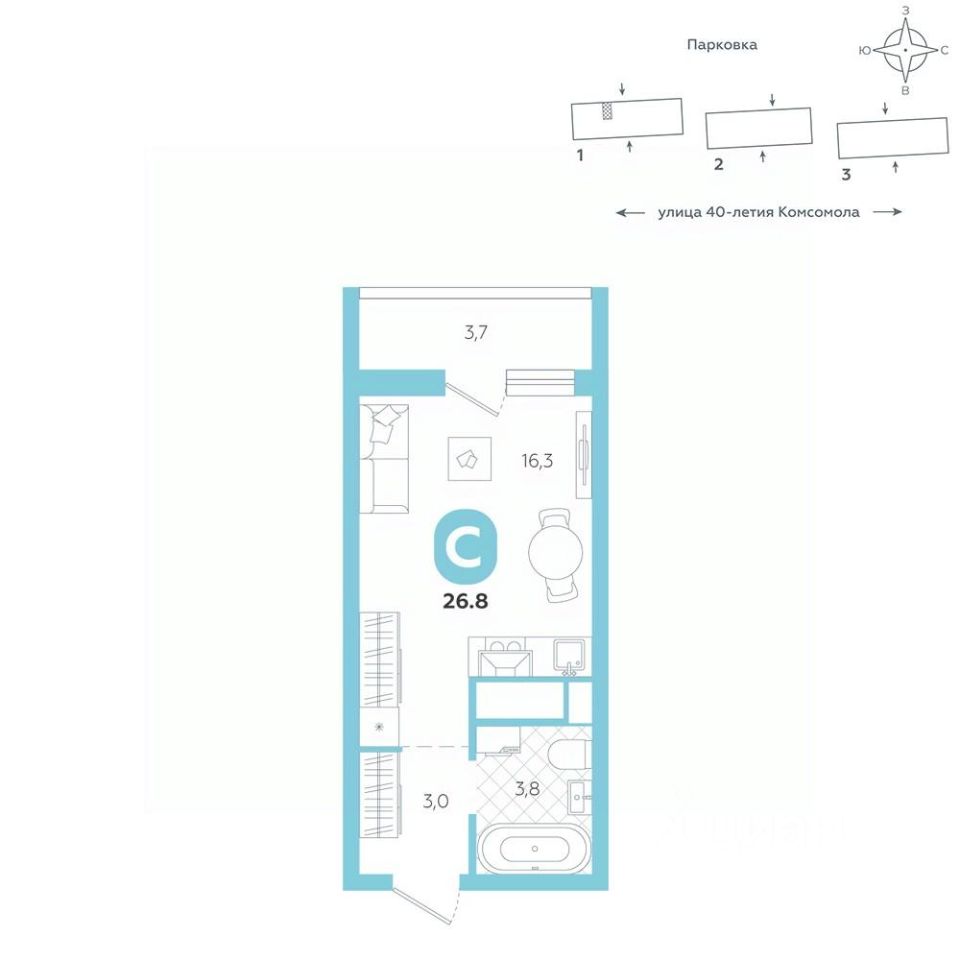 Эргономичная квартира-студия с лоджией и перспективой роста в цене — отличный выбор для тех, кто делает первые шаги к самостоятельной жизни. Общая площадь квартиры 26,8 кв.м., и ее умная планировка позволяет создать атмосферу, полностью отражающую ваши стиль и предпочтения.