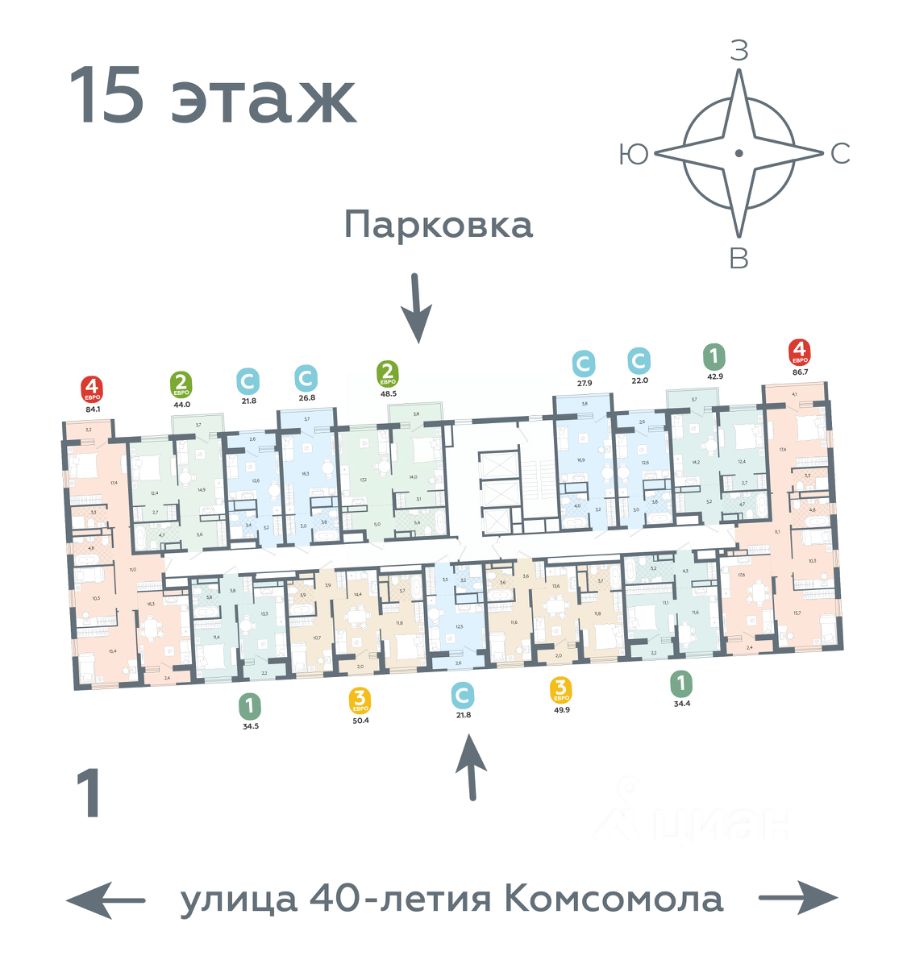 Квартира располагается в ЖК "Комсомольский" — жилом комплексе комфорт-класса. Здесь вы будете наслаждаться беззаботной жизнью, ведь ваш дом — воплощение практичности, безопасности и надежности. Для удобства предусмотрены колясочные на первых этажах домов, где можно оставить велосипеды и коляски в тепле. За безопасность отвечают система электронных ключей и видеонаблюдение. Еще здесь собственная котельная, поэтому в доме всегда будут горячая вода и оплата счетов только за фактически потребленное тепло.