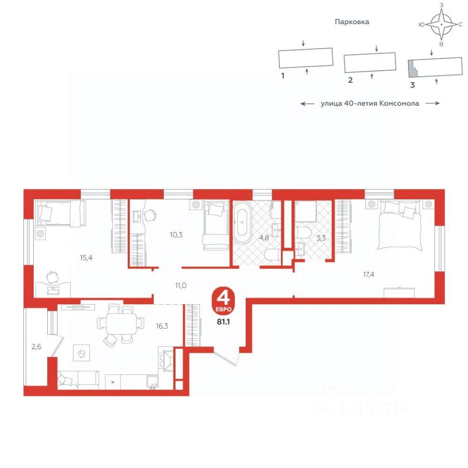 Квартира располагается в ЖК "Комсомольский" — жилом комплексе комфорт-класса. Здесь вы будете наслаждаться беззаботной жизнью, ведь ваш дом — воплощение практичности, безопасности и надежности. Для удобства предусмотрены колясочные на первых этажах домов, где можно оставить велосипеды и коляски в тепле. За безопасность отвечают система электронных ключей и видеонаблюдение. Еще здесь собственная котельная, поэтому в доме всегда будут горячая вода и оплата счетов только за фактически потребленное тепло.