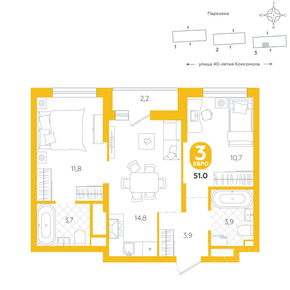Евроформат объединяет кухню и гостиную в одно просторное помещение, что создает ощущение свободы и открытости пространства. Такая планировка предлагает гибкость в оформлении интерьера, позволяя обустроить зону в соответствии с личными предпочтениями, будь то уютный уголок для чтения или стильная обеденная зона. Идеально для тех, кто стремится к гармонии практичности и эстетики в своем доме. Квартира располагается в ЖК "Комсомольский" — жилом комплексе комфорт-класса. Здесь вы будете наслаждаться беззаботной жизнью, ведь ваш дом — воплощение практичности, безопасности и надежности. Для удобства предусмотрены колясочные на первых этажах домов, где можно оставить велосипеды и коляски в тепле. За безопасность отвечают система электронных ключей и видеонаблюдение. Еще здесь собственная котельная, поэтому в доме всегда будут горячая вода и оплата счетов только за фактически потребленное тепло. ПРЕИМУЩЕСТВА ЖК На этаже 12 квартир Красивые и функциональные парадные с мягкой и стильной зоной для отдыха, книгообменником, встроенными почтовыми ящиками и нишами для сумок Колясочные с доступом по ключу IP-домофоны Тихие лифты с плавным ходом О ПРОЕКТЕ ЖК "Комсомольский" строится в спокойном Кировском районе Екатеринбурга в границах улиц Сыромолотова — Рассветная — 40-лет Комсомола. Комплекс состоит из трех домов переменной этажности, которые выделяются динамичными линиями, выразительными фасадами и стильными лоджиями. ЛОКАЦИЯ Всё, что необходимо для повседневной жизни, находится недалеко от дома: школы, детские сады, продуктовые магазины, фитнес-клубы. Дорога до центра города на машине займет всего 10 минут — достаточно повернуть с улицы 40-летия Комсомола на улицу Владимира Высоцкого. Рядом с этим перекрестком начинается "Тропа здоровья" — большой терренкур вдоль "Каменных палаток". 10 мин до центра 3-4 минуты до школы No 82, гимназии No 176 4-5 минут до детских садов No 208, No 583, 266 20 мин до Свердловского областного медицинского колледжа и Центральной городской больницы No 7 В рамках стратегического развития района на первых этажах домов появятся коммерческие помещения, в которых откроются магазины и кафе. Следует учесть, что к 2030 году в Кировском районе планируется формирование регионального рекреационно-оздоровительного кластера, строительство ветки метро, расширение и модернизация старых промышленных зон социальной и бизнес-инфраструктуры, что приведет к созданию комфортной среды для жизни. Кроме того, в стратегию входит развитие Шарташского лесного парка как центра регионального и международного туризма. СПОСОБЫ ПОКУПКИ Ипотека: подберем выгодные условия в нескольких банках, чтобы вы могли выбрать лучшее Материнской капитал: можно использовать в качестве первоначального взноса Рассрочка: платите частями без % Сертификаты: позволяют оплатить часть стоимости квартиры О КОМПАНИИ "Паритет Девелопмент" — это современный и ответственный подход к реализации проектов в сфере жилищного строительства. Компания формирует среду