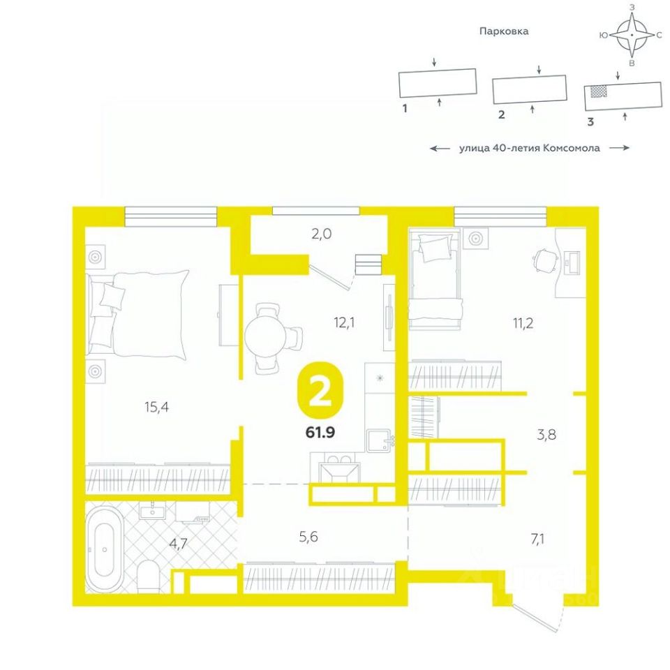 Евроформат объединяет кухню и гостиную в одно просторное помещение, что создает ощущение свободы и открытости пространства. Такая планировка предлагает гибкость в оформлении интерьера, позволяя обустроить зону в соответствии с личными предпочтениями, будь то уютный уголок для чтения или стильная обеденная зона. Идеально для тех, кто стремится к гармонии практичности и эстетики в своем доме. Квартира располагается в ЖК "Комсомольский" — жилом комплексе комфорт-класса. Здесь вы будете наслаждаться беззаботной жизнью, ведь ваш дом — воплощение практичности, безопасности и надежности. Для удобства предусмотрены колясочные на первых этажах домов, где можно оставить велосипеды и коляски в тепле. За безопасность отвечают система электронных ключей и видеонаблюдение. Еще здесь собственная котельная, поэтому в доме всегда будут горячая вода и оплата счетов только за фактически потребленное тепло. ПРЕИМУЩЕСТВА ЖК На этаже 12 квартир Красивые и функциональные парадные с мягкой и стильной зоной для отдыха, книгообменником, встроенными почтовыми ящиками и нишами для сумок Колясочные с доступом по ключу IP-домофоны Тихие лифты с плавным ходом О ПРОЕКТЕ ЖК "Комсомольский" строится в спокойном Кировском районе Екатеринбурга в границах улиц Сыромолотова — Рассветная — 40-лет Комсомола. Комплекс состоит из трех домов переменной этажности, которые выделяются динамичными линиями, выразительными фасадами и стильными лоджиями. ЛОКАЦИЯ Всё, что необходимо для повседневной жизни, находится недалеко от дома: школы, детские сады, продуктовые магазины, фитнес-клубы. Дорога до центра города на машине займет всего 10 минут — достаточно повернуть с улицы 40-летия Комсомола на улицу Владимира Высоцкого. Рядом с этим перекрестком начинается "Тропа здоровья" — большой терренкур вдоль "Каменных палаток". 10 мин до центра 3-4 минуты до школы No 82, гимназии No 176 4-5 минут до детских садов No 208, No 583, 266 20 мин до Свердловского областного медицинского колледжа и Центральной городской больницы No 7 В рамках стратегического развития района на первых этажах домов появятся коммерческие помещения, в которых откроются магазины и кафе. Следует учесть, что к 2030 году в Кировском районе планируется формирование регионального рекреационно-оздоровительного кластера, строительство ветки метро, расширение и модернизация старых промышленных зон социальной и бизнес-инфраструктуры, что приведет к созданию комфортной среды для жизни. Кроме того, в стратегию входит развитие Шарташского лесного парка как центра регионального и международного туризма. СПОСОБЫ ПОКУПКИ Ипотека: подберем выгодные условия в нескольких банках, чтобы вы могли выбрать лучшее Материнской капитал: можно использовать в качестве первоначального взноса Рассрочка: платите частями без % Сертификаты: позволяют оплатить часть стоимости квартиры О КОМПАНИИ "Паритет Девелопмент" — это современный и ответственный подход к реализации проектов в сфере жилищного строительства. Компания формирует среду