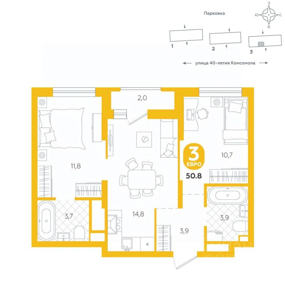 Евроформат объединяет кухню и гостиную в одно просторное помещение, что создает ощущение свободы и открытости пространства. Такая планировка предлагает гибкость в оформлении интерьера, позволяя обустроить зону в соответствии с личными предпочтениями, будь то уютный уголок для чтения или стильная обеденная зона. Идеально для тех, кто стремится к гармонии практичности и эстетики в своем доме. Квартира располагается в ЖК "Комсомольский" — жилом комплексе комфорт-класса. Здесь вы будете наслаждаться беззаботной жизнью, ведь ваш дом — воплощение практичности, безопасности и надежности. Для удобства предусмотрены колясочные на первых этажах домов, где можно оставить велосипеды и коляски в тепле. За безопасность отвечают система электронных ключей и видеонаблюдение. Еще здесь собственная котельная, поэтому в доме всегда будут горячая вода и оплата счетов только за фактически потребленное тепло. ПРЕИМУЩЕСТВА ЖК На этаже 14 квартир Красивые и функциональные парадные с мягкой и стильной зоной для отдыха, книгообменником, встроенными почтовыми ящиками и нишами для сумок Колясочные с доступом по ключу IP-домофоны Тихие лифты с плавным ходом О ПРОЕКТЕ ЖК "Комсомольский" строится в спокойном Кировском районе Екатеринбурга в границах улиц Сыромолотова — Рассветная — 40-лет Комсомола. Комплекс состоит из трех домов переменной этажности, которые выделяются динамичными линиями, выразительными фасадами и стильными лоджиями. ЛОКАЦИЯ Всё, что необходимо для повседневной жизни, находится недалеко от дома: школы, детские сады, продуктовые магазины, фитнес-клубы. Дорога до центра города на машине займет всего 10 минут — достаточно повернуть с улицы 40-летия Комсомола на улицу Владимира Высоцкого. Рядом с этим перекрестком начинается "Тропа здоровья" — большой терренкур вдоль "Каменных палаток". 10 мин до центра 3-4 минуты до школы No 82, гимназии No 176 4-5 минут до детских садов No 208, No 583, 266 20 мин до Свердловского областного медицинского колледжа и Центральной городской больницы No 7 В рамках стратегического развития района на первых этажах домов появятся коммерческие помещения, в которых откроются магазины и кафе. Следует учесть, что к 2030 году в Кировском районе планируется формирование регионального рекреационно-оздоровительного кластера, строительство ветки метро, расширение и модернизация старых промышленных зон социальной и бизнес-инфраструктуры, что приведет к созданию комфортной среды для жизни. Кроме того, в стратегию входит развитие Шарташского лесного парка как центра регионального и международного туризма. СПОСОБЫ ПОКУПКИ Ипотека: подберем выгодные условия в нескольких банках, чтобы вы могли выбрать лучшее Материнской капитал: можно использовать в качестве первоначального взноса Рассрочка: платите частями без % Сертификаты: позволяют оплатить часть стоимости квартиры О КОМПАНИИ "Паритет Девелопмент" — это современный и ответственный подход к реализации проектов в сфере жилищного строительства. Компания формирует среду