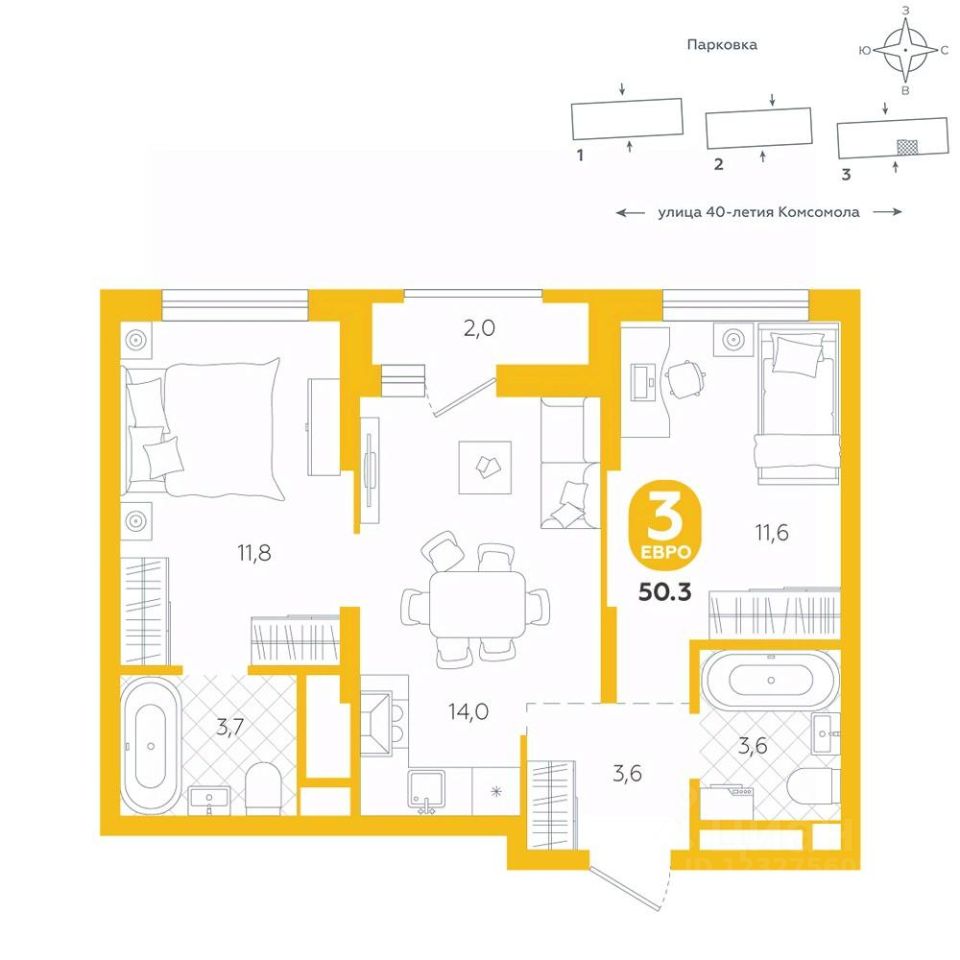 Евроформат объединяет кухню и гостиную в одно просторное помещение, что создает ощущение свободы и открытости пространства. Такая планировка предлагает гибкость в оформлении интерьера, позволяя обустроить зону в соответствии с личными предпочтениями, будь то уютный уголок для чтения или стильная обеденная зона. Идеально для тех, кто стремится к гармонии практичности и эстетики в своем доме. Квартира располагается в ЖК "Комсомольский" — жилом комплексе комфорт-класса. Здесь вы будете наслаждаться беззаботной жизнью, ведь ваш дом — воплощение практичности, безопасности и надежности. Для удобства предусмотрены колясочные на первых этажах домов, где можно оставить велосипеды и коляски в тепле. За безопасность отвечают система электронных ключей и видеонаблюдение. Еще здесь собственная котельная, поэтому в доме всегда будут горячая вода и оплата счетов только за фактически потребленное тепло. ПРЕИМУЩЕСТВА ЖК На этаже 14 квартир Красивые и функциональные парадные с мягкой и стильной зоной для отдыха, книгообменником, встроенными почтовыми ящиками и нишами для сумок Колясочные с доступом по ключу IP-домофоны Тихие лифты с плавным ходом О ПРОЕКТЕ ЖК "Комсомольский" строится в спокойном Кировском районе Екатеринбурга в границах улиц Сыромолотова — Рассветная — 40-лет Комсомола. Комплекс состоит из трех домов переменной этажности, которые выделяются динамичными линиями, выразительными фасадами и стильными лоджиями. ЛОКАЦИЯ Всё, что необходимо для повседневной жизни, находится недалеко от дома: школы, детские сады, продуктовые магазины, фитнес-клубы. Дорога до центра города на машине займет всего 10 минут — достаточно повернуть с улицы 40-летия Комсомола на улицу Владимира Высоцкого. Рядом с этим перекрестком начинается "Тропа здоровья" — большой терренкур вдоль "Каменных палаток". 10 мин до центра 3-4 минуты до школы No 82, гимназии No 176 4-5 минут до детских садов No 208, No 583, 266 20 мин до Свердловского областного медицинского колледжа и Центральной городской больницы No 7 В рамках стратегического развития района на первых этажах домов появятся коммерческие помещения, в которых откроются магазины и кафе. Следует учесть, что к 2030 году в Кировском районе планируется формирование регионального рекреационно-оздоровительного кластера, строительство ветки метро, расширение и модернизация старых промышленных зон социальной и бизнес-инфраструктуры, что приведет к созданию комфортной среды для жизни. Кроме того, в стратегию входит развитие Шарташского лесного парка как центра регионального и международного туризма. СПОСОБЫ ПОКУПКИ Ипотека: подберем выгодные условия в нескольких банках, чтобы вы могли выбрать лучшее Материнской капитал: можно использовать в качестве первоначального взноса Рассрочка: платите частями без % Сертификаты: позволяют оплатить часть стоимости квартиры О КОМПАНИИ "Паритет Девелопмент" — это современный и ответственный подход к реализации проектов в сфере жилищного строительства. Компания формирует среду