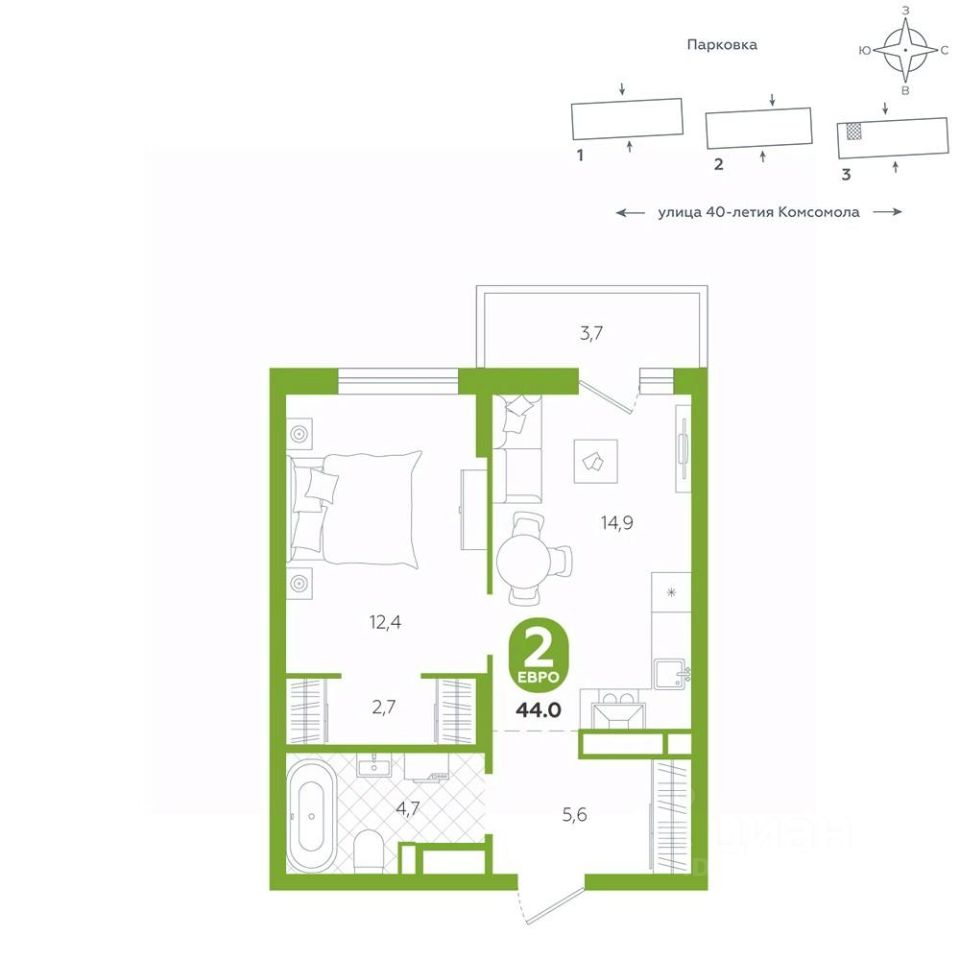 Функциональная квартира с кухней-гостиной и гардеробной в спальне — превосходное решение для тех, кто ценит комфорт и стремится к организованной жизни, где каждый элемент интерьера служит улучшению повседневного опыта. Кухня-гостиная объединяет пространство для кулинарных экспериментов и уютных встреч с друзьями. Просторная гардеробная предоставляет возможность организовать хранение одежды, обуви и аксессуаров, освобождая основное пространство комнаты от лишних вещей. Квартира располагается в ЖК "Комсомольский" — жилом комплексе комфорт-класса. Здесь вы будете наслаждаться беззаботной жизнью, ведь ваш дом — воплощение практичности, безопасности и надежности. Для удобства предусмотрены колясочные на первых этажах домов, где можно оставить велосипеды и коляски в тепле. За безопасность отвечают система электронных ключей и видеонаблюдение. Еще здесь собственная котельная, поэтому в доме всегда будут горячая вода и оплата счетов только за фактически потребленное тепло. ПРЕИМУЩЕСТВА ЖК На этаже 14 квартир Красивые и функциональные парадные с мягкой и стильной зоной для отдыха, книгообменником, встроенными почтовыми ящиками и нишами для сумок Колясочные с доступом по ключу IP-домофоны Тихие лифты с плавным ходом О ПРОЕКТЕ ЖК "Комсомольский" строится в спокойном Кировском районе Екатеринбурга в границах улиц Сыромолотова — Рассветная — 40-лет Комсомола. Комплекс состоит из трех домов переменной этажности, которые выделяются динамичными линиями, выразительными фасадами и стильными лоджиями. ЛОКАЦИЯ Всё, что необходимо для повседневной жизни, находится недалеко от дома: школы, детские сады, продуктовые магазины, фитнес-клубы. Дорога до центра города на машине займет всего 10 минут — достаточно повернуть с улицы 40-летия Комсомола на улицу Владимира Высоцкого. Рядом с этим перекрестком начинается "Тропа здоровья" — большой терренкур вдоль "Каменных палаток". 10 мин до центра 3-4 минуты до школы No 82, гимназии No 176 4-5 минут до детских садов No 208, No 583, 266 20 мин до Свердловского областного медицинского колледжа и Центральной городской больницы No 7 В рамках стратегического развития района на первых этажах домов появятся коммерческие помещения, в которых откроются магазины и кафе. Следует учесть, что к 2030 году в Кировском районе планируется формирование регионального рекреационно-оздоровительного кластера, строительство ветки метро, расширение и модернизация старых промышленных зон социальной и бизнес-инфраструктуры, что приведет к созданию комфортной среды для жизни. Кроме того, в стратегию входит развитие Шарташского лесного парка как центра регионального и международного туризма. СПОСОБЫ ПОКУПКИ Ипотека: подберем выгодные условия в нескольких банках, чтобы вы могли выбрать лучшее Материнский капитал: можно использовать в качестве первоначального взноса Рассрочка: платите частями без % Сертификаты: позволяют оплатить часть стоимости квартиры О КОМПАНИИ "Паритет Девелопмент" — это современный и ответственный подход