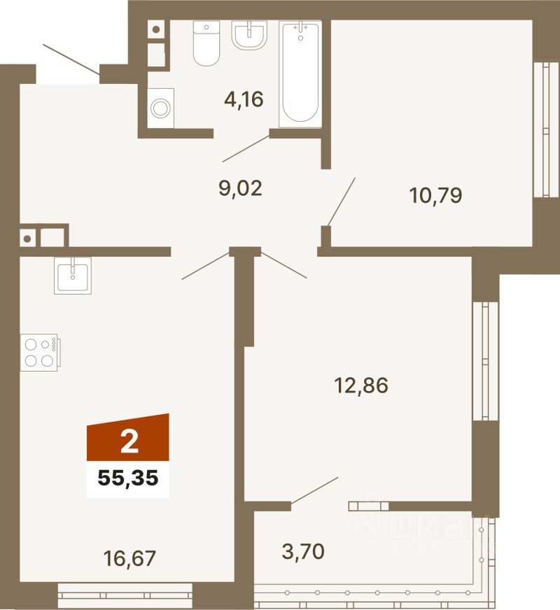 Продаётся 2-комнатная квартира в строящемся доме (Секция 1.1), срок сдачи: III-кв. 2027, общей площадью 55.35 кв.м., на 2 этаже. Новый жилой квартал "Трилогия" - это три элегантных дома в Верх-Исетском районе от застройщика "Формула строительства" с повышенным вниманием к деталям и отсутствием компромиссов.