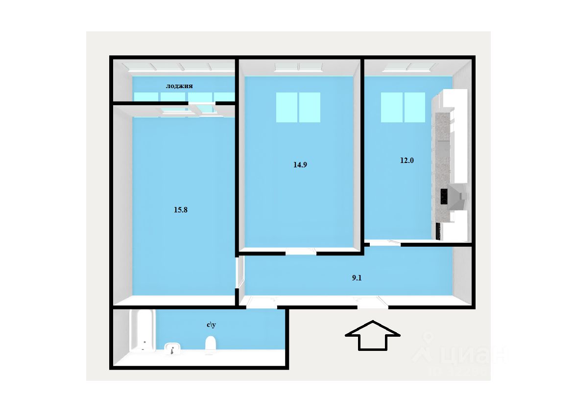 Две просторные комнаты с видом на двор, место под гардероб, вместительное кухня, современный санузел, теплые полы, идеально подходят для комфортного проживания семьи.
