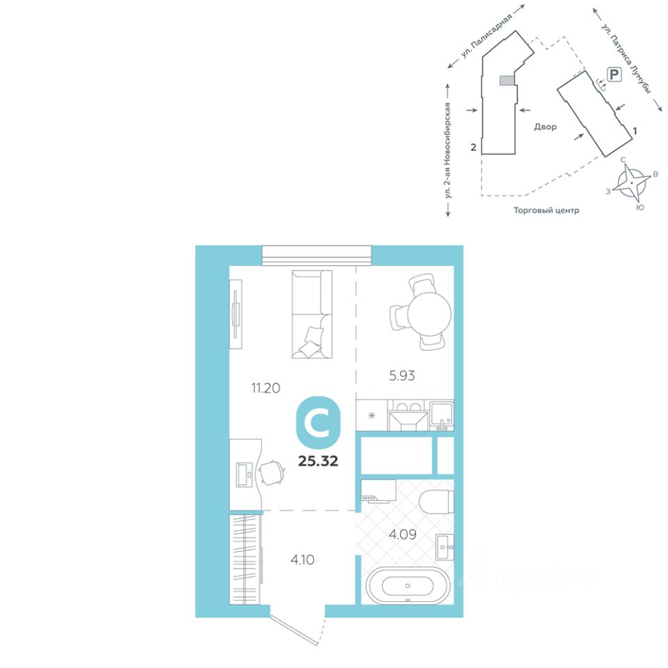 площадь квартиры - 25,32 кв.м