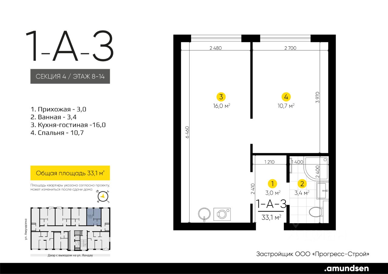 Жилой квартал "Amundsen" - для себя, для семьи, для жизни и развития. Авторская концепция проекта эффектно выделяется в 3 особенностях комплекса: фасады, двор и места общего пользования. AMUNDSEN ПРОЕКТ С ХАРАКТЕРОМ ВЕЛИКОГО ПЕРВООТКРЫВАТЕЛЯ. 4 СЕЗОНА: Двор-трансформер позволяет активно использовать все площадки круглый год. В холодное время года санки, коньки и снежные бои за главную башню. В теплое время источник наполняет двор водой и прохладой. Работают площадки для активных игр и спокойного отдыха. 6 ДЕТСКИХ ПЛОЩАДОК: Мы разделили площадки по возрастным группам для малышей и детей постарше. Качели, аттракционы, водные и активные игры созданы, чтобы познавать мир. 5 ПЛОЩАДОК ДЛЯ СПОКОЙНОГО ОТДЫХА: За счет игры с ландшафтом мы создали приватные зоны, украсили пространство разнотравьем, оживили двор источником. Шум воды, лежаки, беседки, парк места, где ты почувствуешь течение жизни. AMUNDSEN ИДЕАЛЬНОЕ МЕСТО ДЛЯ ЖИЗНИ И РАЗВИТИЯ. - Жилой квартал расположен в экологически чистом районе в окружении двух лесных массивов. - Новые современные школы и детские сады. Спортивный кластер для занятий. - Главный холл пространство для всех. Для самых маленьких игры, для взрослых кафе с ярким дизайном, тихий коворкинг, места для отдыха и светлый, просторный атриум. - Детские площадки "будущего" с оригинальным подходом к созданию игровой среды. - Безопасная территория. Круглосуточная охрана, видеонаблюдение 24/7, электронная система доступа, двор без машин. Застройщик ООО СЗ "Прогресс-Строй", проектная декларация на сайте наш.дом.рф
