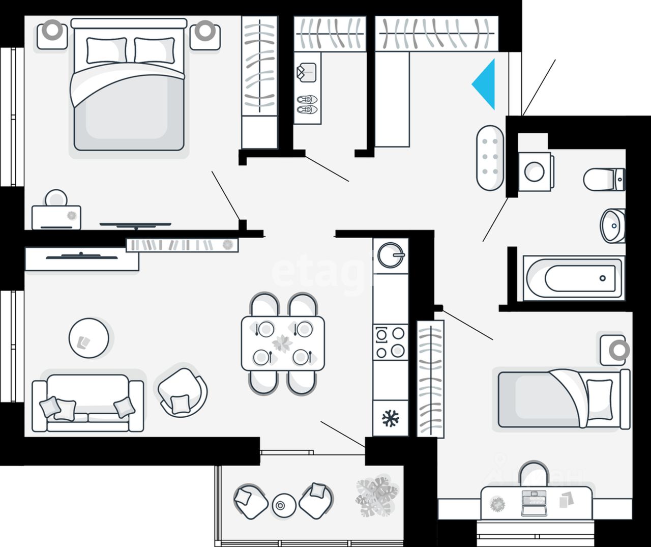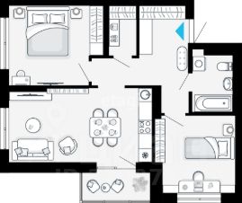 Лучшая планировка из 2х комнатных квартир в Первом доме в ЖК "Небосклоны". Окна на Ю-В и Ю-З, на комфортном 5м этаже. Кухня-гостиная 19 м2 с лоджией и окном, две спальни 13 и 11 м2, гардеробная и просторный санузел. Отделка предчистовая.