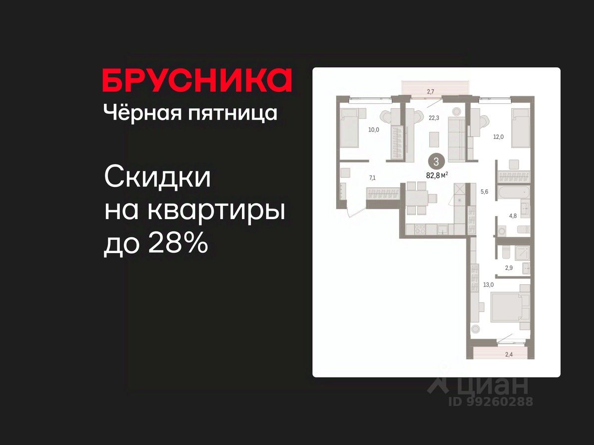 Продается трехкомнатная квартира с предчистовой отделкой в ЖК "Квартал Траектория" на 3 этаже. Общая площадь: 82.8 кв.м., жилая: 35 кв.м., площадь просторной кухни-столовой: 22.3 кв.м. Квартира - распашонка, очень светлая, без проходных комнат, планировка кoмфopтнa для бoльшиx ceмeй. В квартире два балкона, два совмещенных санузла. Высота потолков 2.82 м.